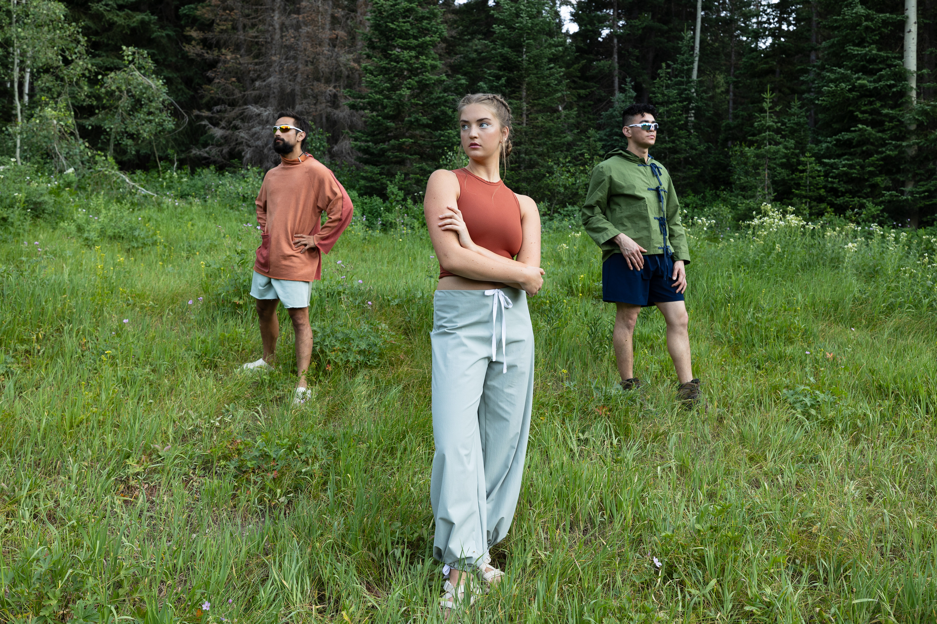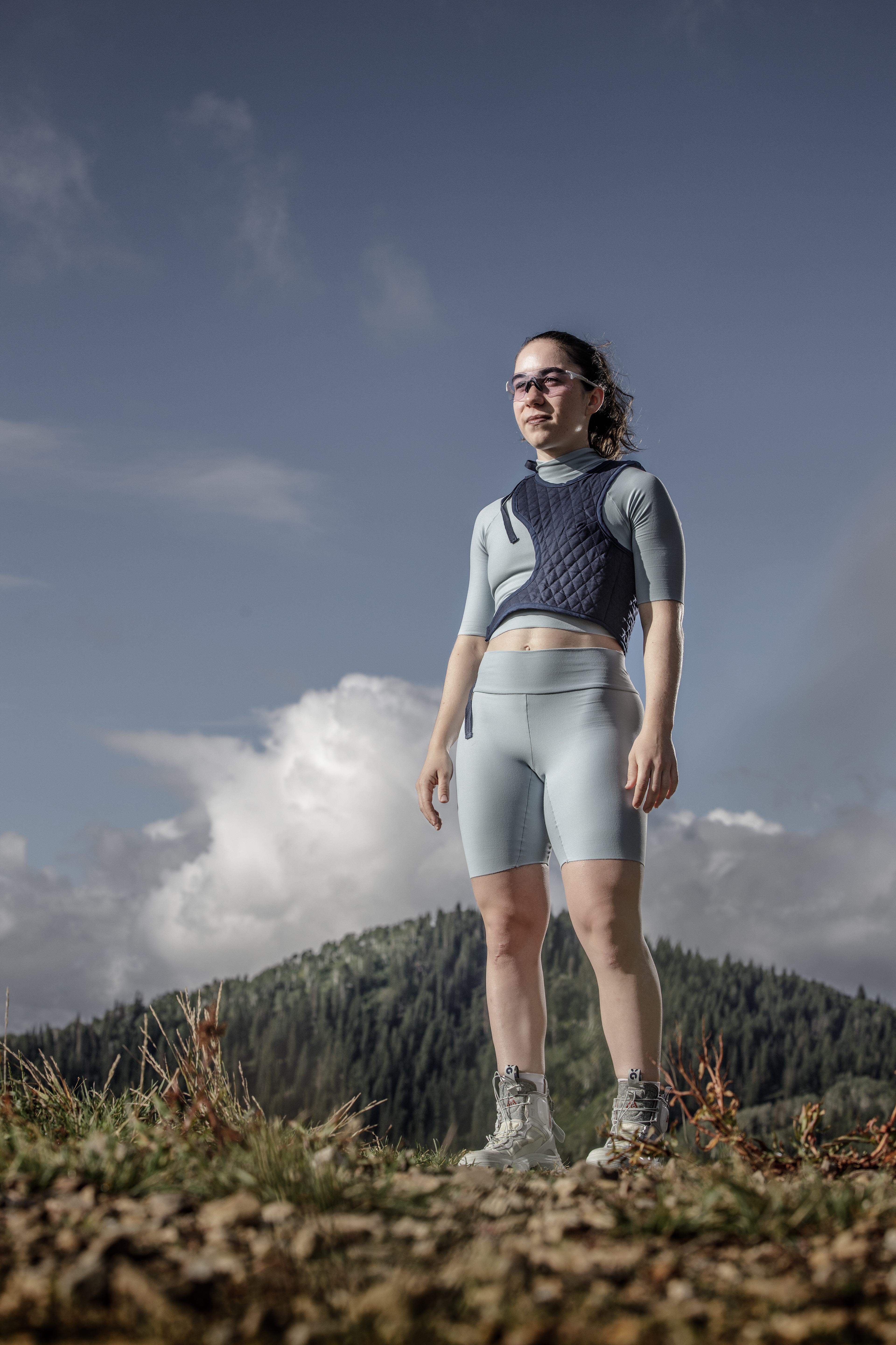 Hiking top, shorts, and vest