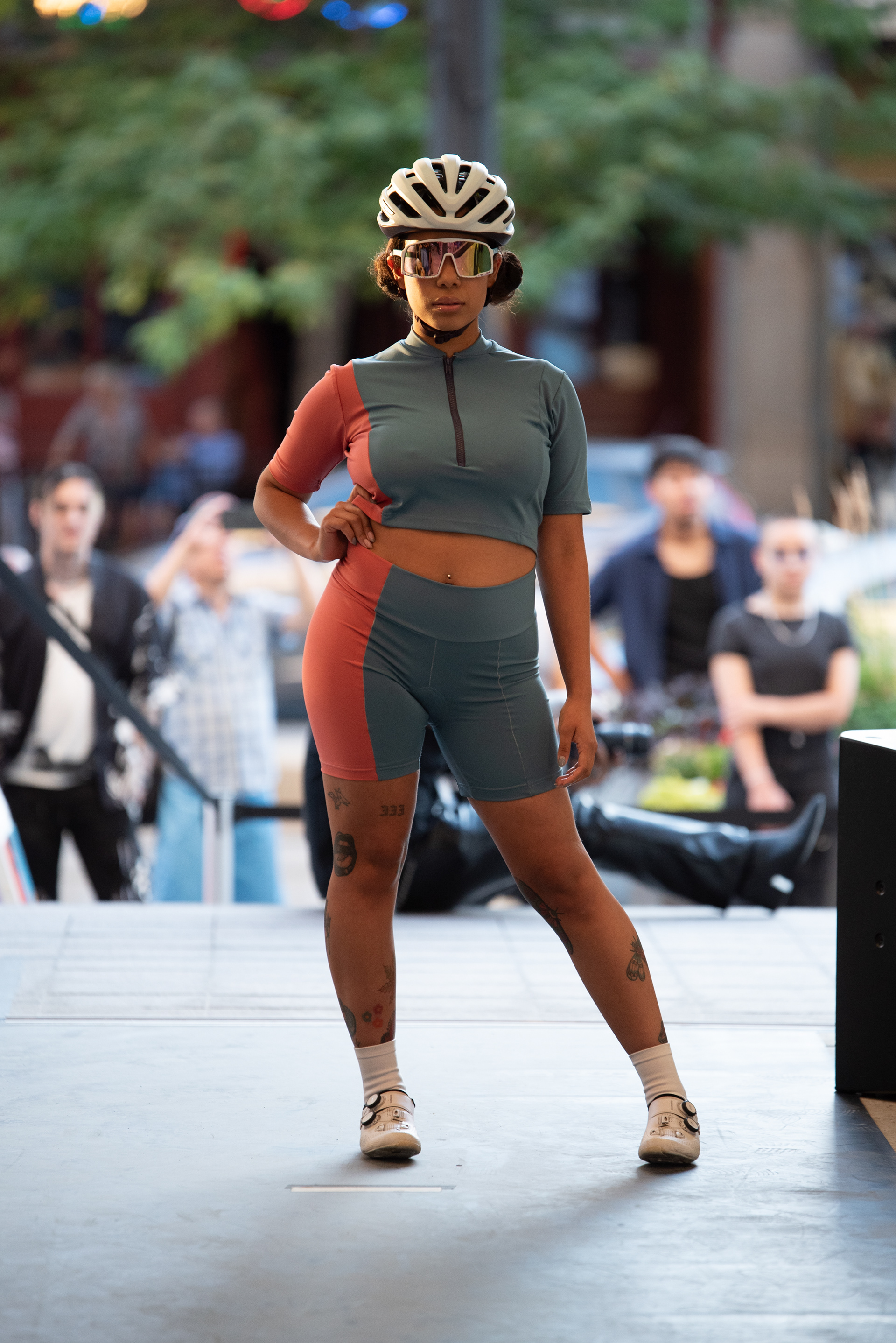 Left: Exercise tunic with romper under, Model: Ella Engel @ellaengell